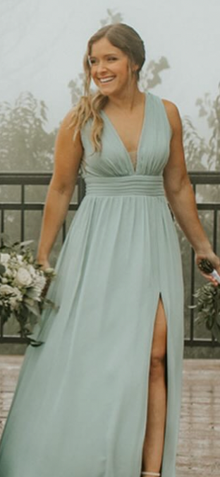 Robe longue en chiffon avec décolleté en V à l'avant et au dos