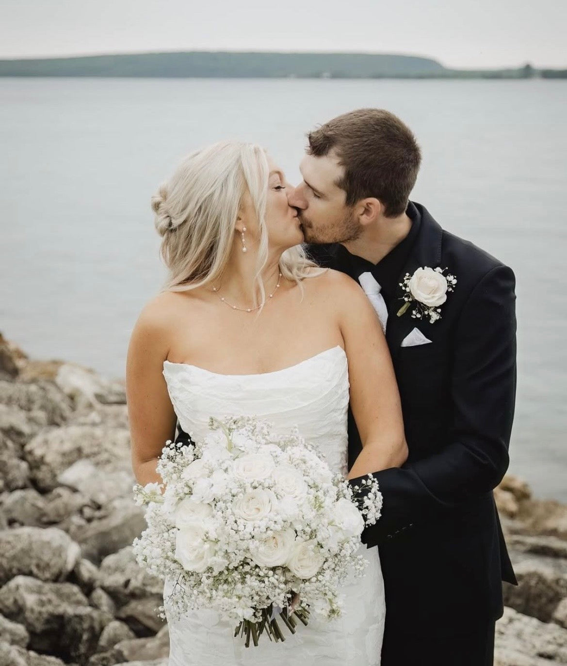 Wedding dress, fitted cut in brocade (also available in matte satin – without tone-on-tone print / solid ivory color)