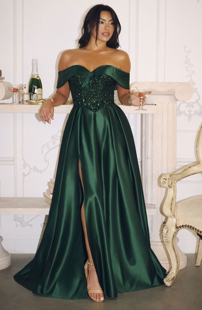 Robe de soirée longue avec jupe satinée avec bretelles tombantes